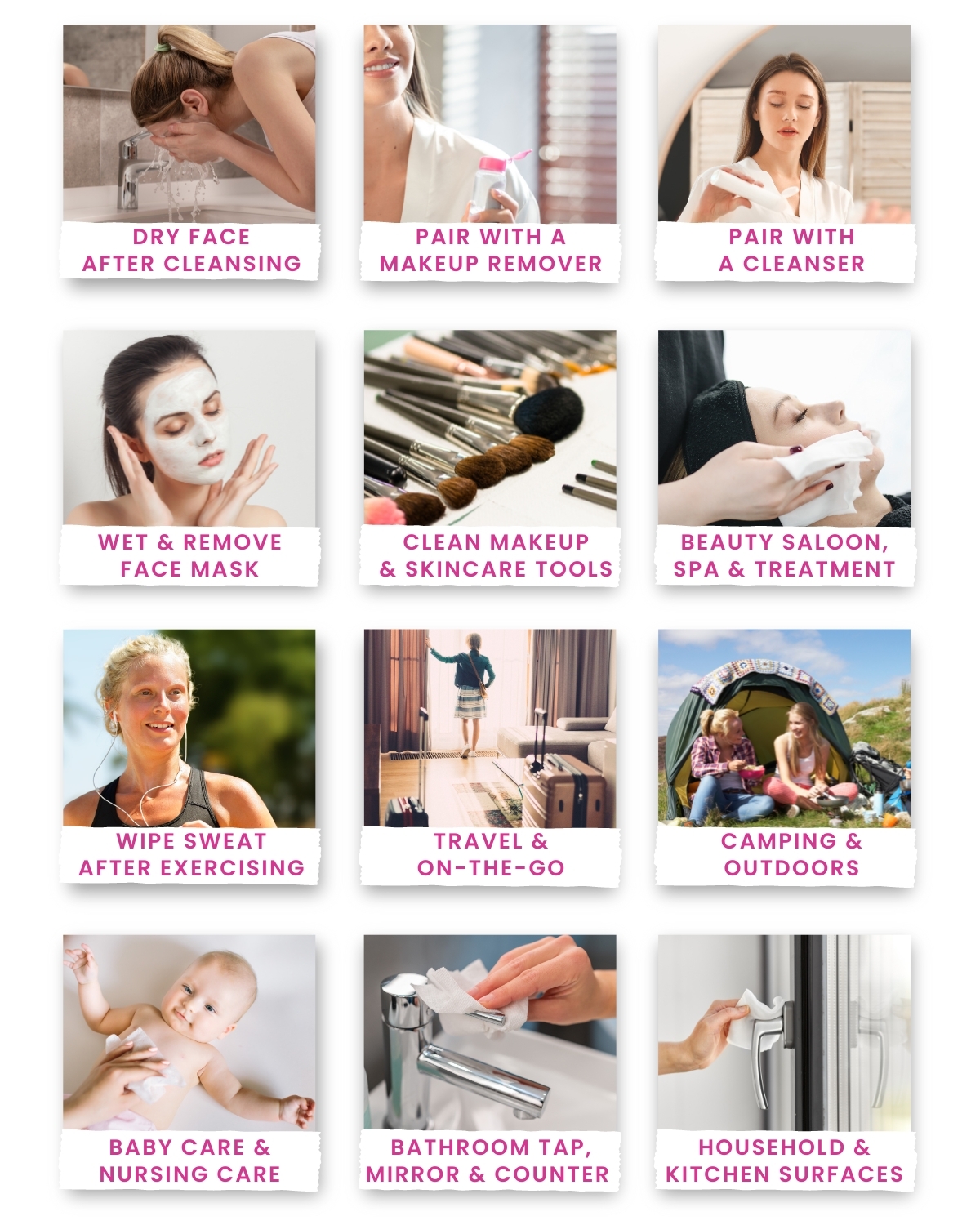 Clean Towels use a different fabric than paper towels. They are made from premium viscose, which is softer, more absorbent and has high tensile strength. The unique interwoven pattern of the fabric ensures Clean Towels are exceptionally durable, resisting tearing even with considerable effort! When it comes to skincare, Clean Towels are significantly gentler on your skin compared to paper towels, which can be harsh on delicate facial skin.