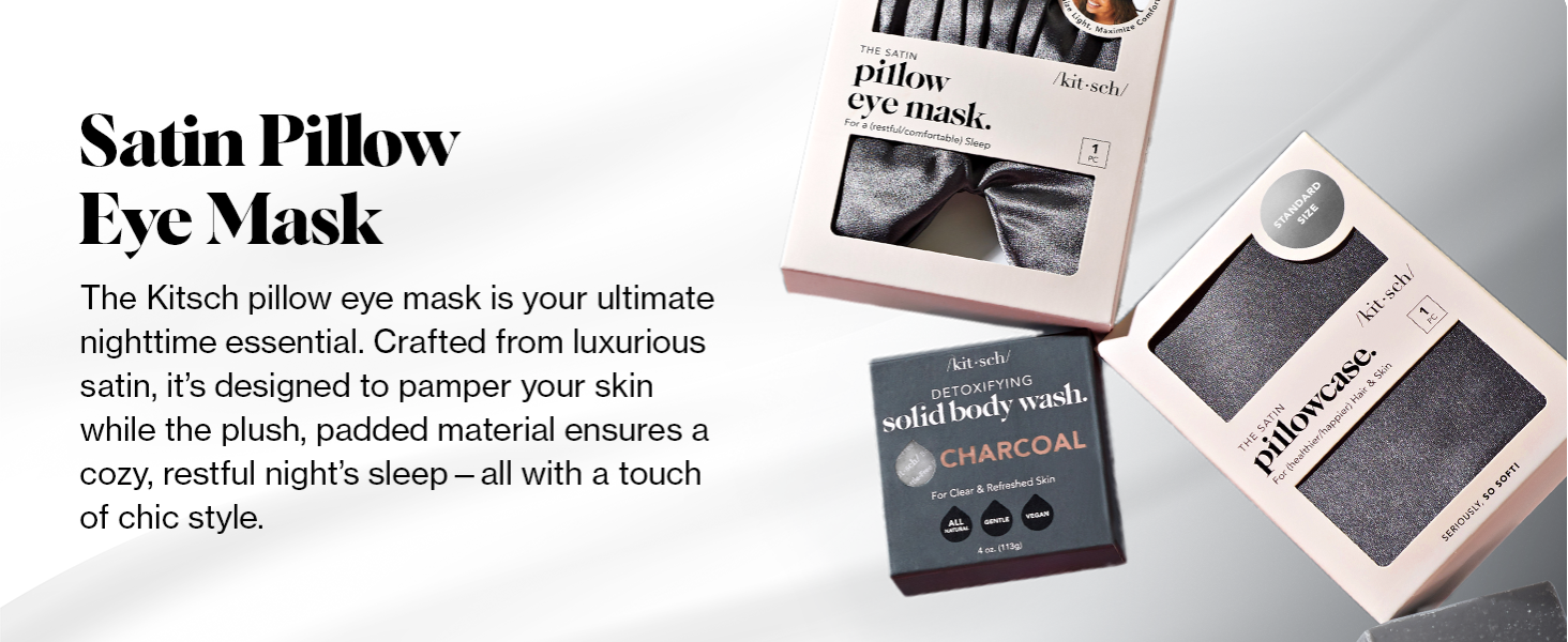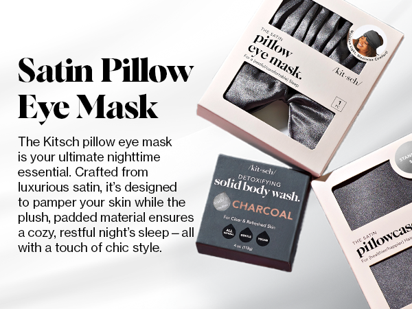 ELEVATE YOUR BEAUTY REST: Upgrade your nighttime routine with the Kitsch Charcoal Satin Eye Mask. Crafted with ultra-soft satin, this luxurious softer than Slik Sleep Mask ensures ultimate comfort while protecting your skin. It's a must-have accessory for beauty and relaxation.