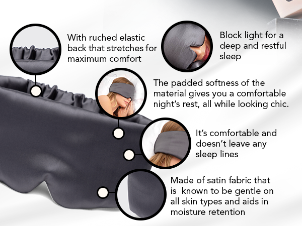 PROMOTES RESTFUL SLEEP: Designed to block out light and promote deep, restful sleep, the padded softness of the Satin Eye Masks material gives you a comfortable night rest, all while looking chic.