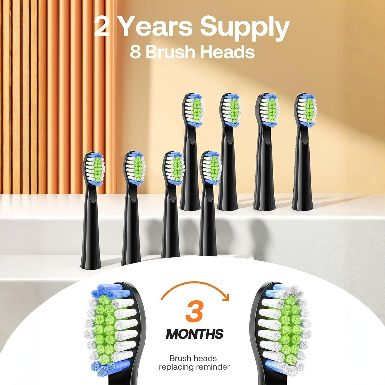 ✓ 8 Replaceable heads : For 2-year of use. Unique 3D shape bristles design and a bristle replacement reminder, to help keep your teeth and whiter and healthier.